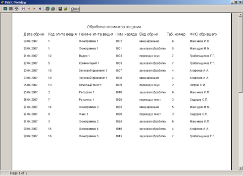Рисунок 2.22 - Внешний вид отчета "Обработка элементов вещания"