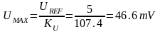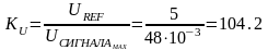 Коэффициент усиления должен быть таким, чтобы максимальный уровень полезного сигнала усиливался до опорного напряжения АЦП, что соответствовало бы максимальному коду. Опорное напряжение выбираем стандартное