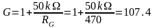 В инструментальных усилителях коэффициент усиления задается с помощью подключения внешнего сопротивления RG, значение которого высчитывается для INA128 по следующей формуле