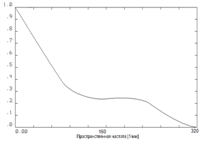 Рис. 3. Функция передачи модуляции объектива ночного канала.