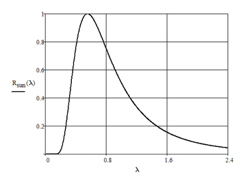Аналогично п. 2.2.2.1, но относительная спектральная яркость источника (Солнце) описывается исходя из соотношения Планка для АЧТ, нагретого до температуры 5217 К.