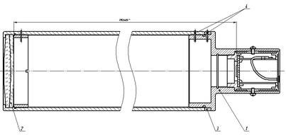 Камера телевизионная в оправе поз. 1 соединяется по резьбовой поверхности с объективом в оправе поз. 2. Для обеспечения размера заднего фокального отрезка с заданной точностью (0,6 мм) используется юстировочное кольцо поз.3. Его толщина уменьшается путем вытачивания на токарном станке до нужного значения.