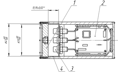 При сборке базовым узлом является корпус с предустановленными печатными платами поз 2. В него устанавливается лазерная батарея поз. 3. Посадка происходит по гладкой цилиндрической поверхности диаметром 41 мм. Затем на ту же поверхность устанавливается кольцо поз. 4, которое определяет расстояние между лазерами и коллиматорами. Это расстояние (13,19 мм) обеспечивается подрезкой торца кольца поз 4.