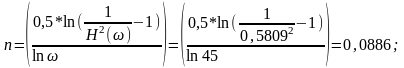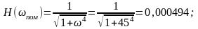 Теперь определяем степень аппроксимации полинома. Принимаем полином Баттерворта, степень которого должна быть такой, чтобы АЧХ проходила через точку с координатой 45 и 1. Нормированная частотная характеристика находиться по формуле: