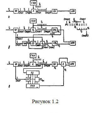 Схема этого прибора (рисунок 1.2 в) состоит из генератора квантующих импульсов ГКИ, счетчика импульсов СИ, цифрового отсчетнрго устройства ЦОУ, преобразователя кода ПКК, линии задержки Л3 с N2н выходами и N2н схем совпадения СС. Каждый квантующий импульс Т0 поступает на ЛЗ, и через интервалы Т0/ N2н на соответствующих выходах ЛЗ появляются выходные импульсы. К каждому из N2н выходов ЛЗ подключена схема совпадения. На вторые входы всех СС поступает стоп-импульс. До прихода стоп-импульса все СС закрыты, в момент прихода стоп-импульса открывается та схема СС, на которой совпадают во времени импульс с периодом повторения Т0/ N2н и стоп-импульс, тогда: