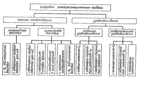 Цифровые приборы делятся на цифровые приборы прямого преобразования, уравновешивания (рисунок 1.1) и комбинированные.