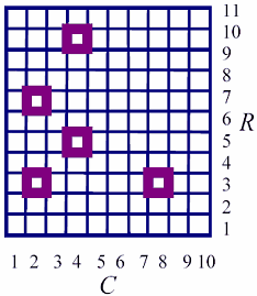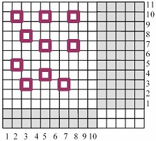 Далее рассматривается метод получения минимального покрытия на примере матрицы памяти с пятью дефектными ячейками [11], двумя резервными строками и одним столбцом (см. рис. 2.3).