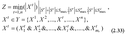 Функция цели определяется как минимизация резервных компонентов матрицы памяти (S – spare), необходимых для восстановления ее работоспособности в процессе функционирования цифровой системы на кристалле путем синтеза ДНФ покрытия дефектных элементов с последующим выбором минимального конъюнктивного терма