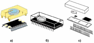 Для решений с монтажом "через отверстие" и высокой плотности ОЗУ предлагается гибридный корпус DIP, в котором LPSRAM и супервизор – отдельные микросхемы, установленные на общей печатной плате вместе с батареей (рис. 2.4 с). В настоящее время доступны плотности ОЗУ до 16 Mбит.