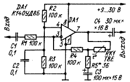А также так как для смешения сигналов использовались резисторы, то сигнал уменьшился, и в этом блоке происходит усиление до нормального уровня.