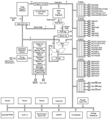 Рисунок 2.2 – Структурная схема микроконтроллера PIC16F877A