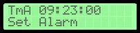 Чтобы установить время будильника выберите опцию Alarm Time и нажмите кнопку [ENT]. Как обычно, кнопка [ENT] подтверждает, а кнопка [ABT] отменяет операцию в любой момент.