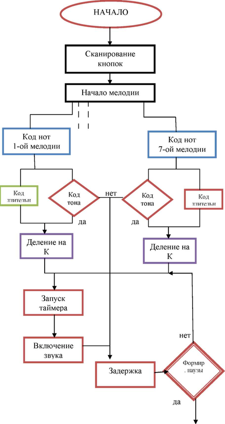 исунок 2.5 – Алгоритм прогаммы для электромузыкального звонка