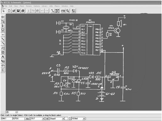 Принципиальная схема электромузыкального звонка выполнена в САПР Accel Eda (Рисунок 2.7).