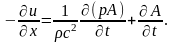 где р=р(х,t) – звуковое давление как функция х и t; u=u(х,t) – скорость воздушного потока (volume velocity) как функция х и t, ρ - плотность воздуха в трубе; с - скорость распространения звука; A=A(x,t) - «функция площади», т. е. площадь поперечного сечения в направлении, перпендикулярном продольной оси трубы, как функция расстояния вдоль этой оси и времени. Сходная система уравнений была получена Сондхи,