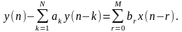 Сигналы на входе и выходе линейных инвариантных к сдвигу систем, таких, например, как фильтры, связаны дискретной сверткой (1.5) и кроме того, разностным уравнением