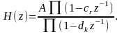 Передаточная функция в общем случае является дробно рациональной. Таким образом, она определяется положением нулей и полюсов на z-плоскости. Это означает, что H(z) можно представить в виде
