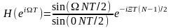 где w[k] - прямоугольное весовое окно длиной N отсчётов. Умножение заданной импульсной характеристики на прямоугольное окно приводит к искажению частотной характеристики синтезируемого фильтра. Частотная характеристика, соответствующая (1.55), будет равна свёртке заданной частотной характеристики прямоугольного окна. Таким образом, эффект Гиббса связан с пульсирующим поведением частотной характеристики прямоугольного весового окна.