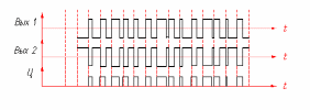 Сигналы ФД1,ФД2 (см. «Эпюры сигналов» и рисунок 4.2) имеют форму меандр. При этом сигнал ФД1 опережает ФД2 на 90.