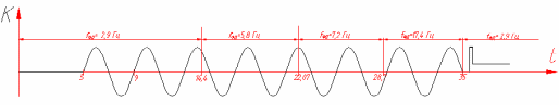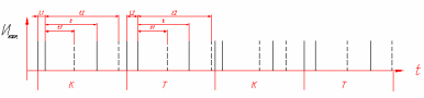 Команда К – закон изменения длительностей координатных интервалов t, t1, t2, с учетом изменения частот fФД в интервале от 2,9 до 17,4 Гц (см. «Эпюры сигналов» и рисунок 4.4).