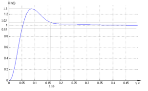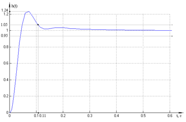Используя график переходной характеристики определим время переходного процесса как время, по истечении которого отклонение управляемой величины от установившегося значения станет менее 5%.