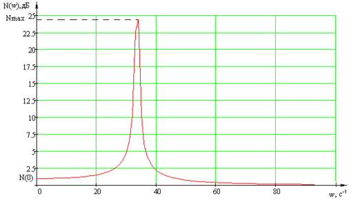 Построим АЧХ замкнутого сепаратного канала (Рисунок 1.6), определим показатель колебательности М, используя формулу (1.3)