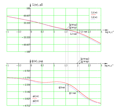 log wср=1.6, wcp=40 рад/с. Она близка к требуемому значению.