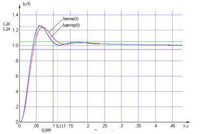 Сравним графики переходных характеристик относительно пар «вх1-вых1» для непрерывной и дискретной МСАР