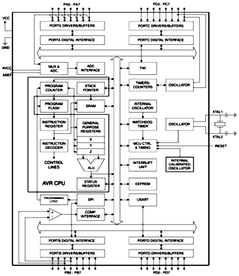 Рисунок 1.4 – Функциональная схема микроконтроллера ATMega 16L