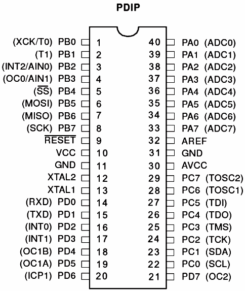 Рисунок 1.3 – Расположение выводов микроконтроллера ATMega 16L