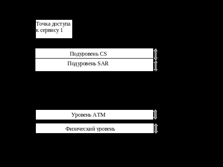 Уровень адаптации АТМ отвечает за взаимодействие между уровнем АТМ и более высокими уровнями. При перемещении информации вниз в модели АТМ уровень адаптации разбивает пользовательскую информацию на единицы данных длиной до 48 байт, которые затем используются для формирования поля полезной нагрузки ячейки АТМ. На пути вверх в модели АТМ происходит сборка поступающих ячеек, при которой происходит восстановление пользовательской информации