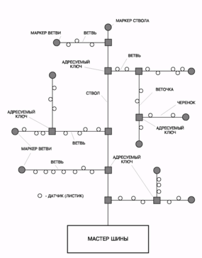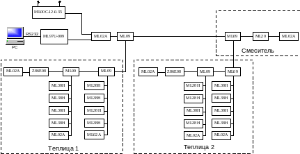 Рис. 3.2. Структура однопроводной сети АСУ тепличного комбината.