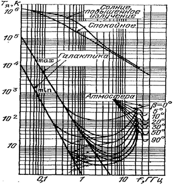 На распространение радиоволн на линиях Земля — космос (или космос — Земля) заметное влияние оказывает атмосфера Земли — как ионосфера, так и тропосфера. Это влияние особенно заметно на частотах от 10 ГГц и выше, а также при малых углах прихода волны (малых углах места антенны земной станции)[4].