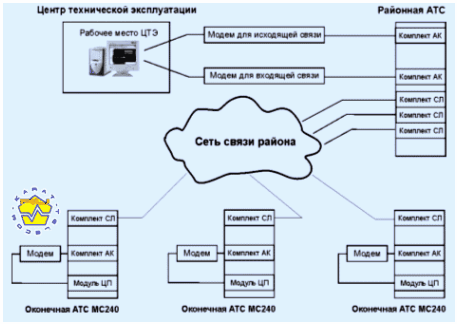 Создание центров технического обслуживания и эксплуатации. Оконечные/узловые станции серии МС240 ориентированы на централизованное обслуживание, при этом возможно подключение сервисного терминала в местах установки (рисунок 2.5). Аппаратные и программные средства станции позволяют проводить удаленную диагностику ее работы, в том числе диагностику абонентских линий, например, измерение посторонних напряжений на линейных проводах, измерение величины сопротивления изоляции и емкости между проводами, между проводами и землей. При поставке станции возможна комплектация программным обеспечением, позволяющим организовать централизованную систему технической эксплуатации станций района (ЦТЭ).