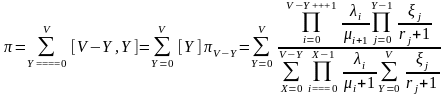 - условные потери для вызовов первого потока в состоянии с y занятыми линиями второго потока и (V-y) занятыми первого потока.