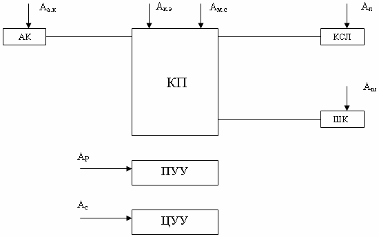 Рассмотрим систему распределения информации, которая в общем виде (рисунок 3.4) состоит из абонентских комплектов, коммутационного поля, комплектов соединительной линии и управляющих устройств. К управляющим устройствам относятся центральное и периферийные управляющие устройства.