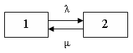В данном случае элементами системами являются абоненты, каждый из которых может находиться в одном из двух состояний: в пассивном 1 и в состоянии занятия канала 2 на время сеанса связи (рисунок 3.6).