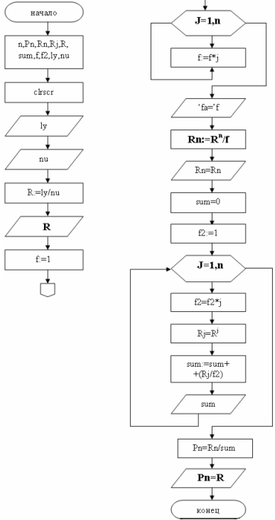 Напишем программу на языке Pascal для расчета вероятности потери вызова, а на рисунке 3.7 приведем ее алгоритм.