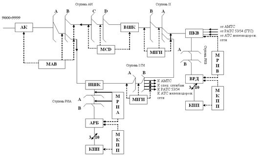 На рисунке 1.1 показана функциональная схема УАТС ст. Петропавловск типа АТСКУ. УАТС на ст. Петропавловск в основном обслуживает корпоративных клиентов (абонентов). Данная станция выполняет функцию оконечной и транзитно-узловой, т. е. к ней подключены (ОС) оконечные станции (рисунок 1 Приложения А).