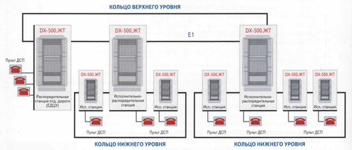 Сеть ОТС на базе станций «МиниКом DХ-500 ЖТ» строится по принципу колец, что позволяет добиться высокой надежности системы связи в случае обрыва линейного тракта.