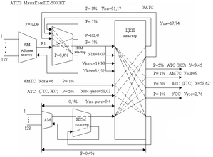 Поскольку для обслуживания междугородной связи в АТСК не предусмотрены отдельные пучки внутристанционных соединительных путей, то при расчёте числа обслуживающих внутристанционных ИКМ линий необходимо к местной нагрузке прибавить междугородную нагрузку [11].