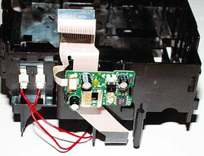 Проверка и замена программного переключателя довольно трудоемкое дело. Для этого потребуется произвести неполную разборку ЛПМ. Чтобы не сбить юстировку элементов ЛПМ, при каждой операции разборки производят фиксацию (зарисовку), положения его конструктивных элементов (программных шестерни и планки, ролика заправки ленты).