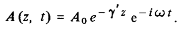 де А0 — амплітуда коливань у крапці розташування джерела; t— час; z— відстань від джерела, те мнимої постійної поширення 7 = 'V 0 = V^-l) буде відповідати хвиля, експоненциально спадаюча в міру видалення від джерела: