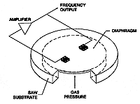 Частоти ПАХ змінюється разом з напругою. Коли діафрагма прогинається під тиском, датчик ПАХ змінює дані на виході.