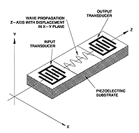 Якщо вибрати правильний напрямок зрізу матеріалу, тоді будуть переважати горизонтально поляризовані поперечні поверхневі акустичне хвилі (рис.3.1). У цих хвиль є зсув, паралельний поверхні пристрою.