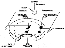Датчики тиску стали першою заявленою технологією використання ПАХ у сфері застосування датчиків, у 1975 році . На швидкості ПАХ сильно впливає напруга, що подається на п'єзоелектричну підкладку, по якій поширюється хвиля. У такий спосіб датчик тиску на ПАХ створений шляхом перетворення пристрою в діафрагму (див. рис. 3.2).
