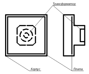 Тансформатор живлення закріплюємо круглою шайбою, яка накриває його зверху і кріпиться у гвинтом, трансформатор розміщено у центрі верхньої бокової сторони плати;