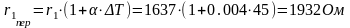 Визначимо фактичне падіння напруги вторинної обмотки за Т=20°С: