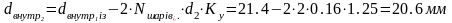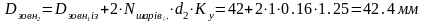 Знайдемо зовнішній та внутрішній діаметри трансформатора з намотаною вторинною обмоткою не враховуючи міжобмоточну ізоляцію: