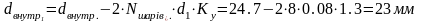 Визначимо кількість шарів вторинної обмотки по внутрішньому діаметру магнітопровода: